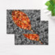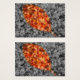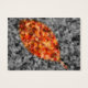 Fotografía de otoño, de color selectivo, de hojas de mito de crepe caídas, con forma de hoja enmarcada en oro de rojo brillante, naranja y amarillo sobre un fondo blanco y negro.