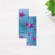 Dibujo digital de flores moradas lindas y estilizadas con brillantes centros rojos. Te miran curiosamente desde la hierba alta junto a una piscina de agua transparente.
