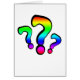 Diseño con divertidos signos de interrogación con relleno degradado de arcoiris y contornos negros pesados.