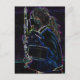 Fotografía alterada a un resplandeciente resumen de un miembro uniformado de una banda de marcha femenina en perfil, sosteniendo a su gorra de plumas en una mano y un clarinete en la otra.