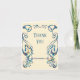 Esta exquisita tarjeta postal presenta un borde prominente y ornamentado en el estilo Art Nouveau, caracterizado por sus líneas fluidas y orgánicas y motivos florales estilizados. El borde, representado en tonos de azul, verde y dorado con una apariencia desgastada o texturizada, enmarca una zona central de color crema más claro diseñada para escribir. La estética general evoca un sentimiento vintage o clásico, lo que la hace adecuada para diversas ocasiones que requieren un toque de elegancia.