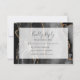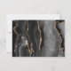 Esta elegante tarjeta de respuesta de boda moderna cuenta con un fondo de ágata de acuarela negra recortado con brillo de oro falso. El título aparece en una escritura caprichosa a mano, con texto personalizable debajo en una fuente de cobre gris carbón sobre una pantalla blanca rectangular semi-opaca. El reverso presenta un diseño de ágata negro y dorado a juego.