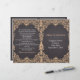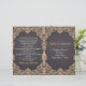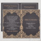 El marco vintage de la hoja de pergamino de coral y la ceremonia del boda de la pizarra y el programa fiesta con un marco de hojas de pergamino de coral sobre un pizarrón o pizarra gris de carbón y tu texto. Un enfoque moderno y contemporáneo con un tema vintage. Este diseño de plantilla retro forma parte de un conjunto de bodas, es totalmente personalizable y puede ser personalizado. Tendrás que doblarlo en el centro. Elija sólo este tipo de valor de papel a medida que se dobla bien.