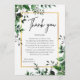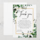 Esta tarjeta botánica de "Gracias" es una pieza de papelería de eucalipto que combina la frescura orgánica con un estilo estructurado y de alta calidad, lo que la hace adecuada para bodas modernas, fiestas de compromiso o baby showers.