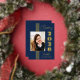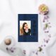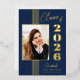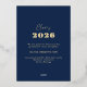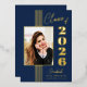 La hoja de oro real añade un toque de elegancia a este clásico anuncio de graduación azul marino para la promoción de 2026.
