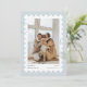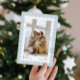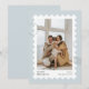 Una tarjeta de Navidad de una foto presenta marco de franqueo y tipografía moderna.