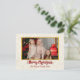 Marco de Foto Personalizado, diseñado especialmente para las celebraciones de Feliz Navidad y Año Nuevo. El marco presenta un toque de elegancia con un borde dorado brillante, añadiendo un ambiente festivo y lujoso a tus recuerdos queridos. Los vibrantes acentos rojos resaltan hermosamente el sentimiento de 'Feliz Navidad', creando una mezcla perfecta de calidez y celebración. Muestra tus momentos preciados con estilo con este impresionante marco, un complemento perfecto para el espíritu alegre de la temporada.