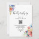 Situada en el centro de la invitación hay un marco claro y etéreo. Este marco transparente flota delicadamente sobre las flores vibrantes, proporcionando un espacio sutil y elegante para el anuncio de la pareja.