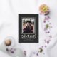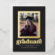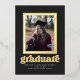 Esta elegante invitación/invitación de graduación presenta un marco de Relieve metalizado real alrededor de una sola foto con un fondo de pizarra oscura. La palabra "graduado" también es Relieve metalizado. La parte trasera de la tarjeta tiene espacio para una segunda foto.