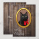 Marco dorado divertido y elegante para tu foto con fondo de madera rústica y texto de Feliz Navidad con letra elegante.