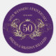 Elegante diseño simple monogramado de aniversario boda. Marco dorado y plateado con corona. Plantilla de texto de fondo y personalizable púrpura y cambiable.