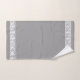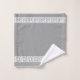 Elegante marco de patrón griego mediterráneo sobre el conjunto de toallas gris blanco y plateado. Patrón griego antiguo.