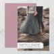 Diseño de tarjeta de anuncio de boda con foto moderna Chic para Save the Date. La plantilla cuenta con espacio para una de tus fotos de compromiso con un marco clásico simple superpuesto donde puedes agregar la fecha de la boda y los nombres de la novia y el novio. Hay espacio en el reverso para agregar texto adicional si es necesario. Utiliza las herramientas de diseño para personalizar las fuentes, mover el texto, cambiar los tipos de papel y el color de fondo para crear tu propio diseño de anuncio único.