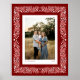 Moderna y encantadora, esta fotografía personalizado le aporta un ambiente de arte folclórico escandinavo a la decoración de su casa con un borde impreso de rojo burdeos profundo con flores pequeñas blancas y hojas de coral suave rosado que rodean una foto de su elección. El texto siguiente puede ser personalizado con los nombres y el año o un mensaje que sea significativo para usted. Colgar este poster como está o ponerlo en un sencillo marco de madera para una dulce estética de cabaña de campo que calienta tu espacio y deleita a los que lo ven.