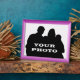 Una plantilla de marco de aspecto 3D magenta para la foto y el texto en una placa fotográfica horizontal de 8 x 10