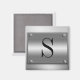 Marco 3d metalizado brillante y cepillado plateado con tornillos en un fondo de superficie fuerte y suave cromado. Personaliza fácilmente añadiendo cualquier monograma, inicial o nombre. Se muestra la letra S. Una gran placa de imán para premios, medallas, etc. Tenga en cuenta que este diseño realista es un diseño impreso, no realmente metalizado.