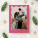 Envíe alegría de vacaciones con estilo con esta moderna tarjeta de foto rosa con un elegante marco de Relieve metalizado dorado ondulado. La parte delantera muestra tu foto familiar favorita con un mensaje festivo de Felices Fiestas, mientras que la parte trasera incluye vacaciones listas para enviar y deseos de Año Nuevo. Una moda y una manera sincera de compartir la alegría con la familia y amigos esta temporada.