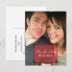 Anuncie a su próximo boda con esta simple y elegante foto de marco Art Deco Guardar la postal de fecha en rojo. Esta postal moderna presenta un marco transparente inspirado en la decoración de la moda sobre una foto de plantilla. Fácil de personalizar, simplemente agregue su propia foto y los detalles de su boda. Haga clic en "Personalizar" para encontrar más opciones de personalización.