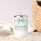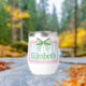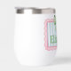 Esta linda taza térmica para vino presenta un marco rosa con rayas azules y blancas y coronada con un lazo de cuadros gingham verde y blanco de estilo preppy. Personaliza con tu elección de nombre o texto especial. Divertido para favores de fiesta personalizados y bolsas de regalo.