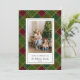 Marco verde rojo revestido con la tarjeta navideña navideña de Feliz. Foto y texto fáciles de personalizar. Felices fiestas!