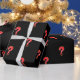 Marcos de preguntas rojas sobre papel de envolvimiento negro hacen que adivinen. Diviértete.
