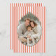 Envía un cálido saludo navideño con esta elegante tarjeta de Navidad de rayas. Con un fondo de rayas rojas y blancas, este diseño enmarca hermosamente la foto de tu familia con un borde festoneado verde oscuro festivo y un acento de lazo.