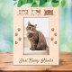 Ilustracion lindo de tres gatos personalizados (tabby, calico y negro) en la parte superior del marco y algunas huellas de pata en los lados. Personalizar con su propio texto.