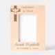Honre el viaje espiritual y el compromiso de la confirmación con este elegante marco de madera tallada. Diseñado para conmemorar este significativo hito, este marco es un recuerdo eterno para cualquiera que celebre su día de confirmación. El diseño presenta una hermosa cruz grabada con una paloma, que simboliza la fe y el Espíritu Santo, junto con la inspiradora frase "Confirmado en Cristo". Un área de grabado de personalizados en la parte inferior le permite agregar el nombre del destinatario y la fecha de su confirmación para un toque verdaderamente único. Perfecto para regalos de confirmación para niños y chicas, celebraciones de la iglesia o la familia, un significativo honor para padrinos, patrocinadores o seres queridos Muestra este marco especial en un manto, estante o escritorio para mantener la memoria de este sagrado día cerca del corazón. Edite texto desde la página del producto o para cambiar el estilo de fuente, utilice la herramienta de diseño.