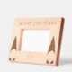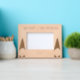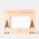 Este marco fotográfico de madera grabada muestra un saludo de Feliz Navidad arriba con el año siguiente, y un gnomo a cada lado. ¡Edita el saludo y el año en la página del producto!