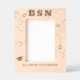 Graduación de BSN Marcos grabados con gorra de graduación y las letras BSN en la parte superior y el nombre de tu graduación y el nombre de la escuela de la que se graduaron y del año de clase en la parte inferior. Estetoscopios cardíacos decoran el marco con una tapa de graduación. Un regalo de graduación fácil de personalizar. Este hermoso marco fotográfico de madera tallada para los grados de enfermería tiene un diseño grabado con láser. Con un mueble plegable, se apoya fácilmente en cualquier escritorio, estantería o mesa. Una encantadora idea de regalo para enfermeras y amigos graduados y familia de todas las edades.
