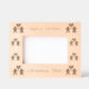 Este impresionante marco fotográfico de Navidades de madera grabada muestra una imagen gráfica de una linda pareja de pan de jengibre. El hombre de pan de jengibre tiene botones verdes y rojos y pantalones con bordes verdes y rojos. La dama del pan de jengibre tiene pestañas de bonito y usa lápiz de labios rojo. Ella tiene una falda roja y verde y encima. Ambos tienen una gran sonrisa. Hay un corazón de pan de jengibre encima de la pareja que muestra su amor por el otro. Hay una escritura blanca dentro del corazón que dice "hecha para el otro". Hay texto personalizado para que pueda personalizar este diseño con los nombres y un mensaje de su elección.
