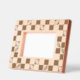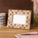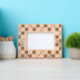 Este marco de madera adorable con orientación horizontal grabado por láser tiene un patrón de tablero de ajedrez con balones de fútbol americanos alrededor de la ventana de fotos del marco.