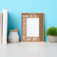 Este marco de madera tallada se derivó de una estampada de rosa vintage de floral y follaje. Puede personalizar fácilmente el texto en esta plantilla de diseño.