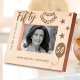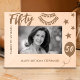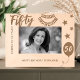 Celebre el increíble hito de un cumpleaños número 50 con este marco de madera grabado con la frase "Brindis por 50 años". Adornado con estrellas festivas, un banner de celebración y un mensaje de cumpleaños personalizado, este marco es el recuerdo perfecto para honrar cinco décadas de maravillosos recuerdos. Personalícelo con un nombre para hacer que este regalo único sea verdaderamente especial. Ideal para una celebración de cumpleaños número 50, este encantador marco aporta un toque de calidez y nostalgia a cualquier decoración.