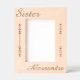 Celebrate the special bond of sisterhood with this beautifully etched 5x7" wooden frame. The word “Sorella” — meaning “Sister” in Italian — is elegantly engraved at the top and can be customized with any word of your choice. A custom name appears at the bottom in graceful script, creating a one-of-a-kind keepsake. The design is finished with a pretty decorative motif etched along both sides, adding timeless charm and warmth to any room. Perfect for birthdays, holidays, or simply saying “Ti voglio bene” to your sister.