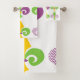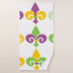 Este juego de toallas tiene un diseño de estilo Mardi Gras de fleur de lis, alineado al otro lado del diseño con un diseño diferente.