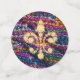 Confeti. Oro, filete verde y violeta de lis sobre el fondo de las perlas para un fiesta temático! Laissez les bons temps rouler. :)