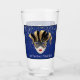 El Mardi Gras Glass tiene una máscara de color negro, dorado y blanco del Mardi Gras con acentos grises y pequeñas estrellas de color dorado impresas en la parte delantera y trasera de este vidrio. "deja que los buenos tiempos roden". Personalizar si prefiere o compra como diseñado para la próxima celebración del Mardi Gras. Colores: negro, dorado, blanco, gris sobre fondo azul zafiro sobre vidrio transparente.