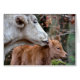 Fotografía de una vaca maremmana lamiendo el oído de su ternera mientras estaba de pie en un bosque de primavera.