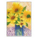 una acuarela de margaritas amarillas en un jarrón azul. este cuadro fue desarrollado en un taller de Dustan Knight. ¡Qué clase tan divertida! Espero que disfrutes.