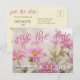 Anuncia tu compromiso y boda próxima con románticas margaritas rosadas sobre un fondo desenfocado. "Guarda la fecha" se estira en la parte superior en letra cursiva rosa para combinar con las elegantes margaritas. En la parte inferior, hay un espacio para tus nombres, la fecha y tu sitio web en un blanco contrastante. La parte posterior de esta tarjeta es de color beige con texto en tonos de verde oliva claro y oscuro. A la izquierda, hay un gráfico de texto "guarda la fecha" en rosa oscuro, y debajo dice: "para la boda de (nombre del novio) y (nombre de la novia) (fecha) (ciudad y estado) invitación a seguir sigue nuestro viaje en (sitio web)". A la derecha hay un espacio para tus nombres y dirección de devolución. *****Haz clic en personalizar para mover el texto, eliminar texto o gráficos, o agregar texto o gráficos - ¡haz que estas tarjetas sean tuyas! *****ESTILO: Margaritas rosadas, flores, romántico, moderno, contemporáneo, desenfocado, personalizar, crear propio, anuncio de compromiso, postal, tarjeta de guardar fecha. *****Compra la colección para artículos que combinan en @ https://www.zazzle.com/collections/pink_daisy_w