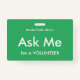 Marcas verdes de mar brillante "Pregúntame" para voluntarios, profesores, docentes, guías, organizadores de eventos para eventos especiales, como bodas, ferias de artesanías, espectáculos caseros y de jardín, eventos caritativos, negocios y funciones corporativas. El color de la tipografía es marfil pálido, lo que le da a esta insignia un aspecto moderno.