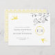 Recuerde a todos que guarden la fecha de su boda con invitaciones amarillas y grises de Kustom By Kris. El diseño es suave y sutil, creando un aspecto elegante. Estas tarjetas, que se coordinan con el resto de la suite nupcial Marigold, le dan un poco de brillo a la colección con sus gorriones voladores y su rama de flores.