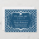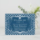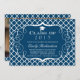 Esta invitación de la graduación de la foto 5x7/invitación elegantes del fiesta tiene un diseño marroquí del estampado de plores del quatrefoil de los azules marinos y del blanco en el fondo. Hay un marco blanco del remolino en el centro con un casquillo en el top. Usted puede modificar fácilmente toda la información del fiesta para requisitos particulares en el centro. ¡En la parte trasera, usted puede personalizar esto con una fotografía del graduado!