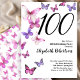 Mariposa 100.ª Invitación de cumpleaños rosado/mor