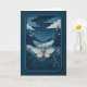 Una delicada polilla de invierno descansa en una colina nevada bajo un cielo nocturno suavemente nublado en esta ilustración en capas estilo recorte de papel. Rodeada de follaje estilizado, nieve que cae y colinas cubiertas de pinos, la escena evoca una tranquila maravilla y quietud emocional. Las alas pálidas de la polilla y sus intrincadas marcas contrastan suavemente con los azules fríos del bosque, creando una composición tranquila y onírica.