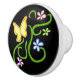 Una mariposa amarilla de bonito con una vid y algunas flores de primavera en este increíble pomo de cerámica. El fondo en negro se puede cambiar haciendo clic en personalizar.