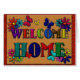 Gran manera de dar la bienvenida a cada uno a cualquier nuevo o existente hogar. Rótulo casero agradable con las falsas flores metálicas y las mariposas. Falsa textura de madera del fondo y borde o marco floral rojo. Comenzado como texturas metálicas entonces terminadas y falsas del arte tradicional, el fondo de madera y el marco floral rojo añadieron con Adobe Photoshop CS2. El arte de la palabra de la paz de la prima encendido apoya de este diseño de tarjeta.