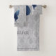 Añada un toque único a su cuarto de baño con un conjunto de toallas de baño personalizadas de la libélula con yeso. El diseño de las toallas incluye una mariposa con joyas vibrantes contra un elegante patrón de damasco gris vintage. También hay artículos de regalo adicionales disponibles con este diseño.
