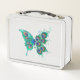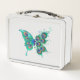 Mariposa pintada de forma artística, ficticia, verde, detallada, con plumas verdes, hermosas, de pavo real sobre fondo blanco.